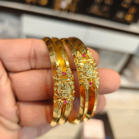 Traditional South Indian temple jewellery bangles, LaxmiDevi design matte finish bangles, Antique temple jewellery bangles for women, Goddess LakshmiDevi design gold look bangles, South Indian wedding temple bangles set, Bridal temple jewellery bangles, Matte finish antique gold bangles, Ethnic South Indian traditional bangles, LakshmiDevi temple jewellery bangle set, Temple bangles for women traditional wear