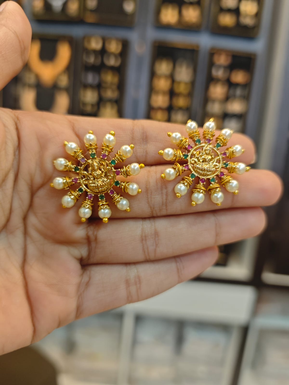 Trending Desiger LakshmiJi Gold Plated Earring With White Crystals for women