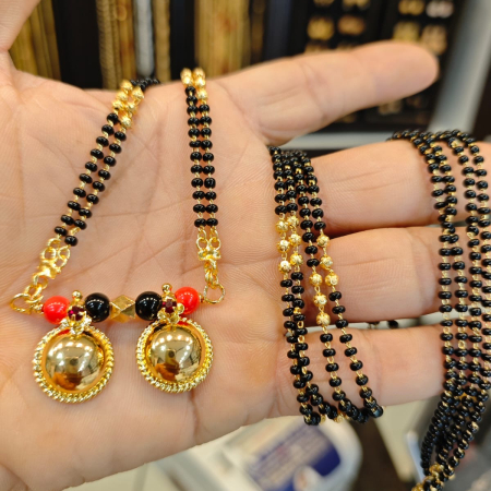 Premium Line Gold Plated Mangalsutra for Women | Daily Wear Black Beads Traditional MangalSutra | Lightweight Alloy Gold Chain Mangalsutra