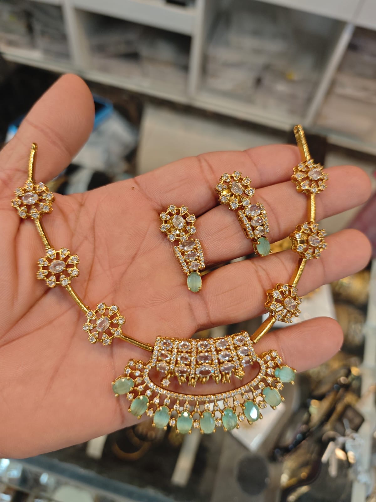 1grm gold polish 2 years warranty pendant with pearls necklace set.