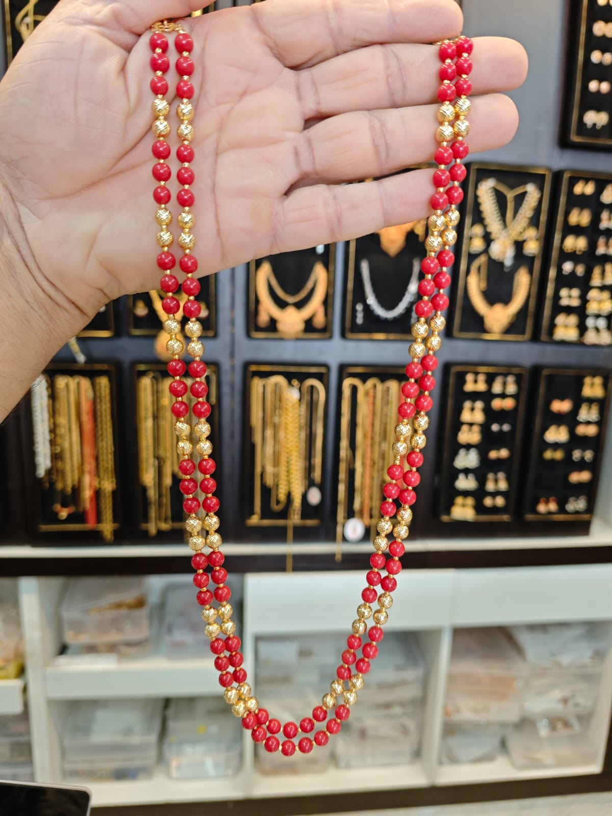 Red Coral Beads Double Layered Gold Chain 24 Inches Necklaces & Chains