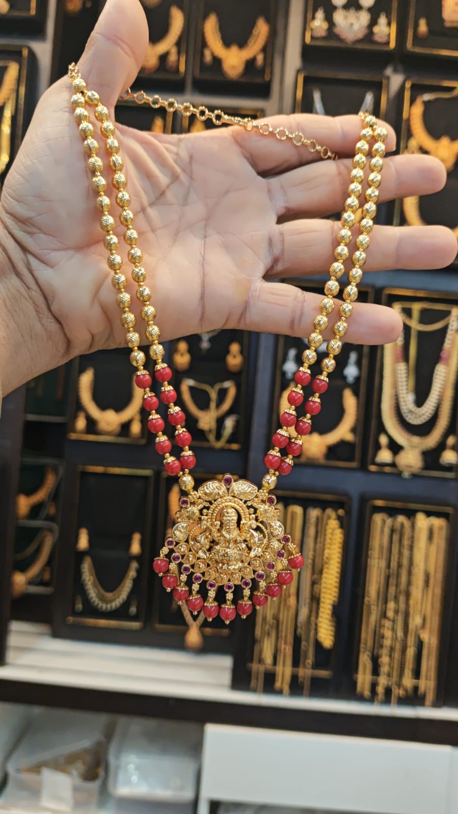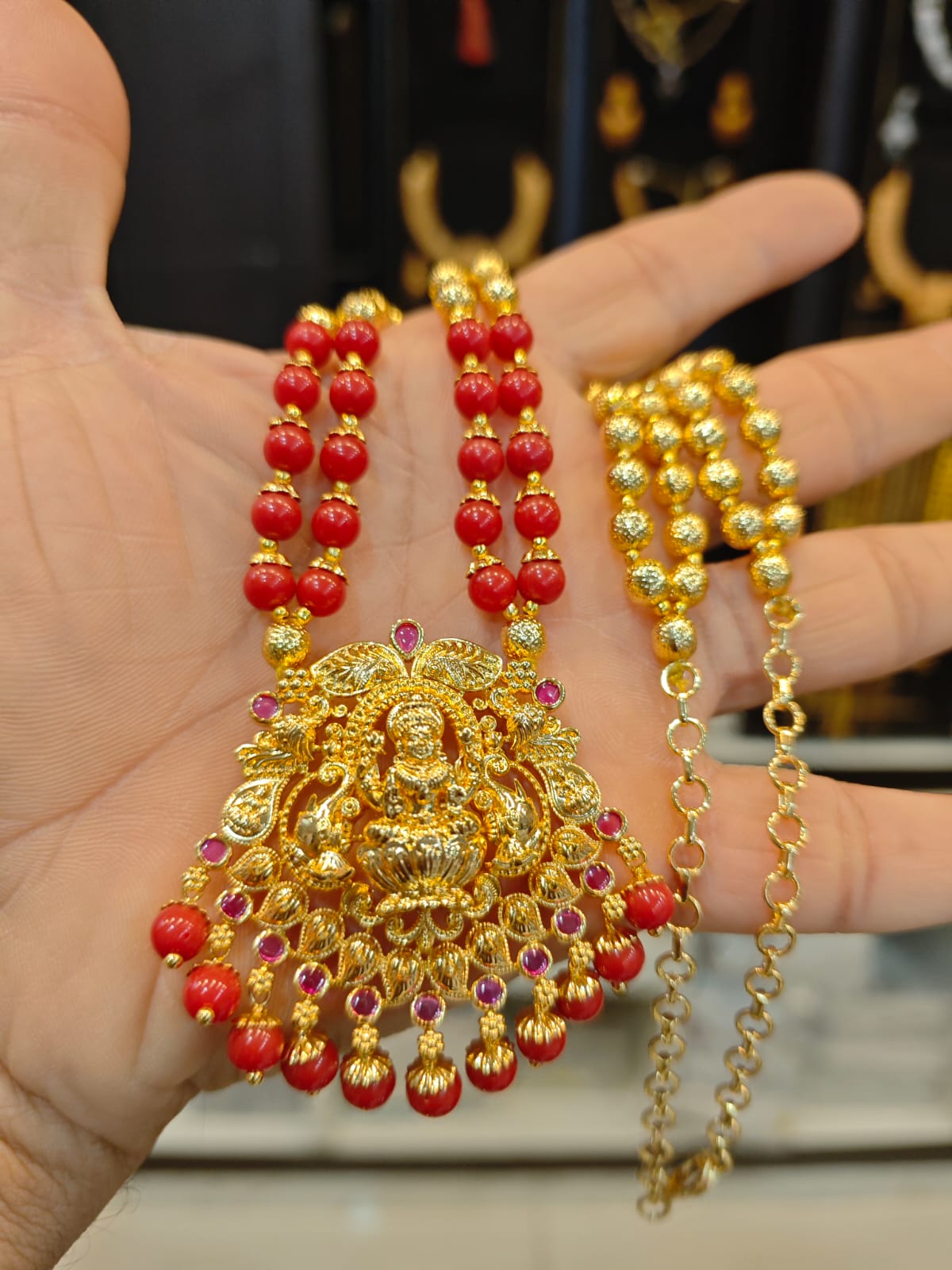 rani red beads/havala set with lakshmi devi pendant for women, comes with detachable and adjustable pendant for women