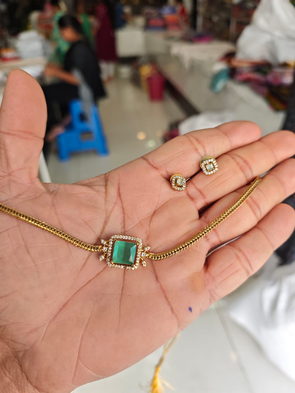 French Simple Emerald Necklace Niche Design 18k Gold Light Luxury Collarbone Chain square Emerald Necklace Jewelry