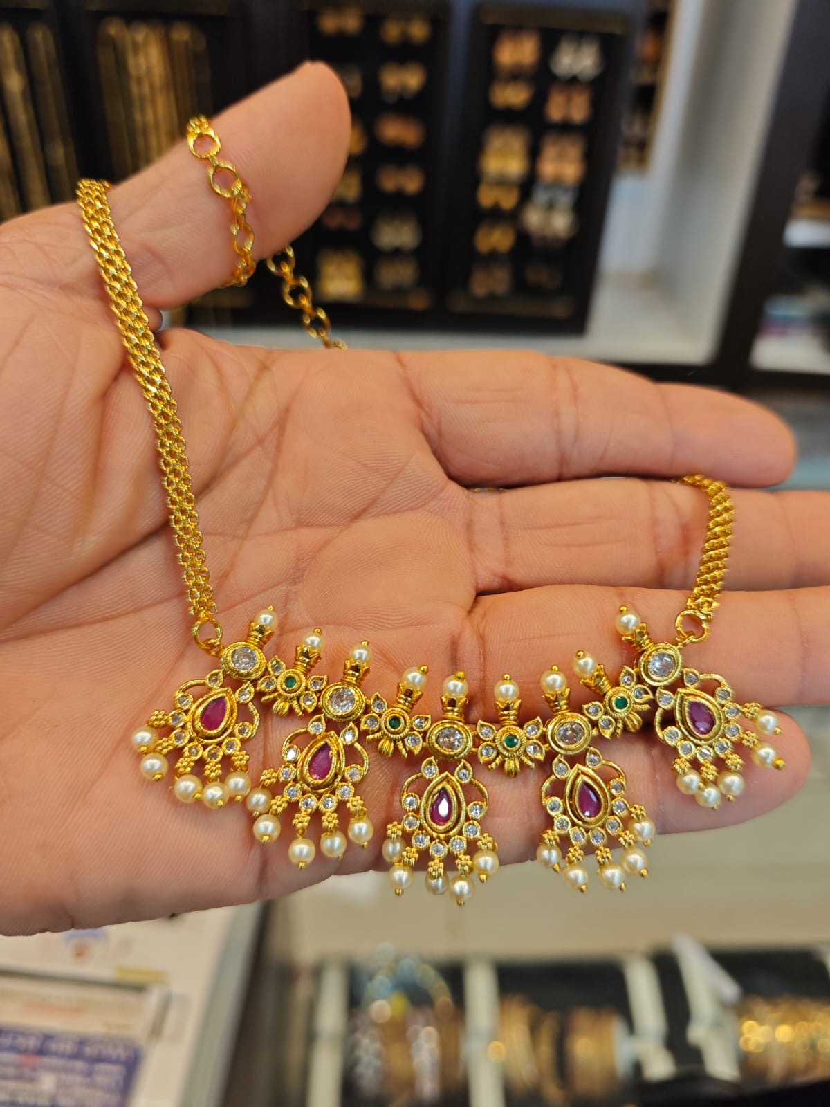 Navaratri 2350 day offer 1grm gold polish short mangalya chain set.