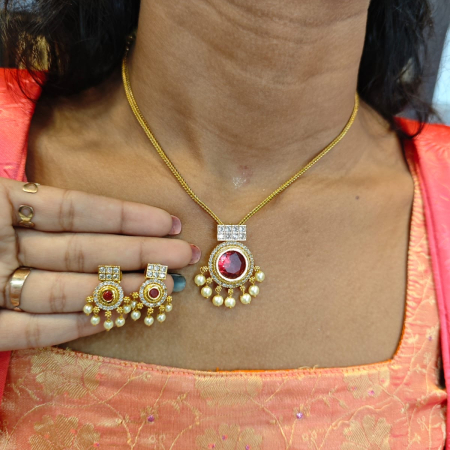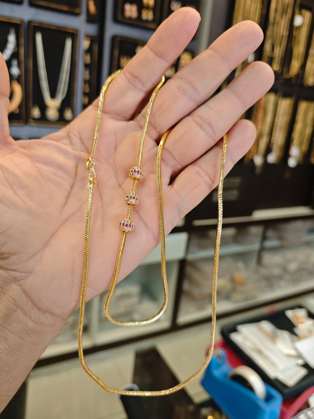 Design: Stylish gold-plated chain with a central ornamental bead featuring green stone detailing.